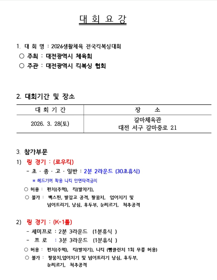 2026 생활체육 전국 킥복싱대회