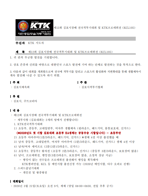 제12회 김포시장배 전국격투기대회 및 KTK프로데뷔전